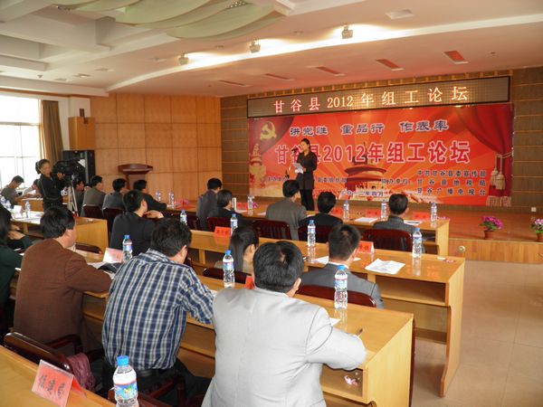 4月25日下午,甘谷县举办2012年组工论坛,论坛主题是组工干部“讲党性、重品行、做表率”。全县15个乡镇和20个县直党委组织干事共35名同志,结合自己的岗位职责和亲身体会,从思想、工作、作风、能力等不同角度,对组工干部的党性,展开了深刻讨论。