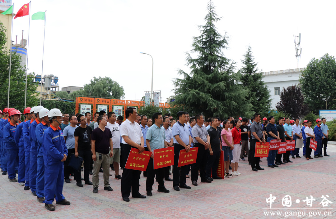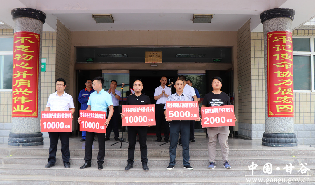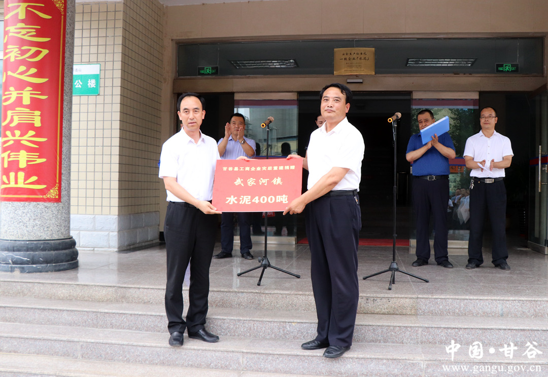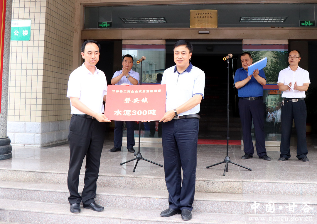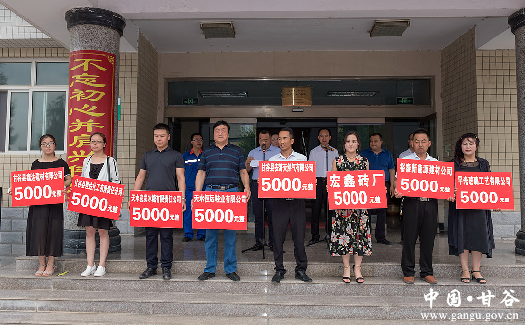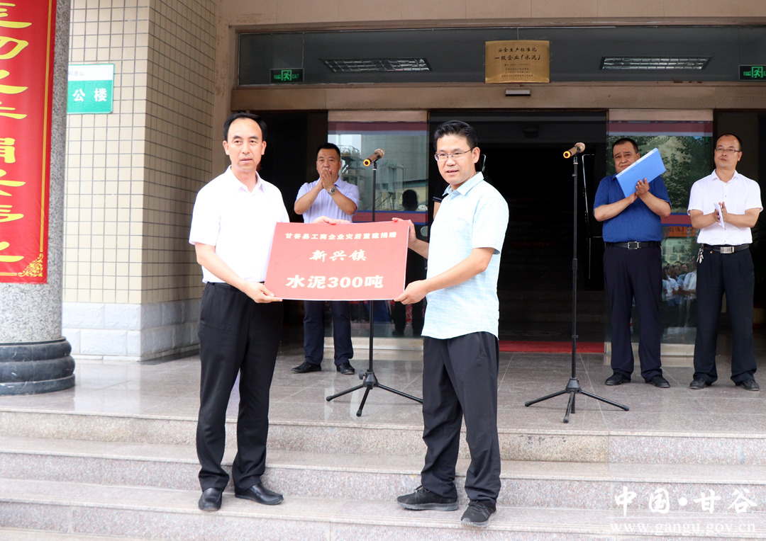洪水无情,企业有情。7月19日,甘谷县49家工商企业现场向我县受灾较重乡镇捐赠37.6万元,用于购买1000吨水泥,帮助受灾群众渡过难关,助力家乡灾后重建工作。 县委常委、政法委书记冯全敬出席捐赠仪式并讲话,副县长高丽主持捐赠仪式。新兴镇、磐安镇、武家河镇、县工信局、工商局、物流园区管委会负责人及工商企业代表共计100多人参加捐赠仪式。