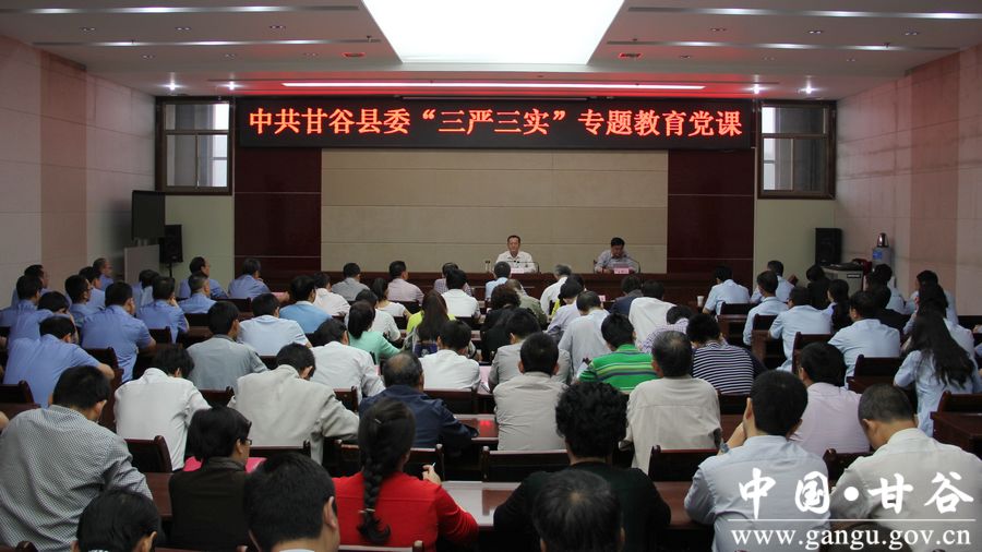 610,甘谷县委举办“三严三实”专题教育党课,县委副书记武建成主讲。县委办、政法委、法院、检察院、农工部、党校全体干部职工及六峰镇党委书记共100余人聆听了党课。