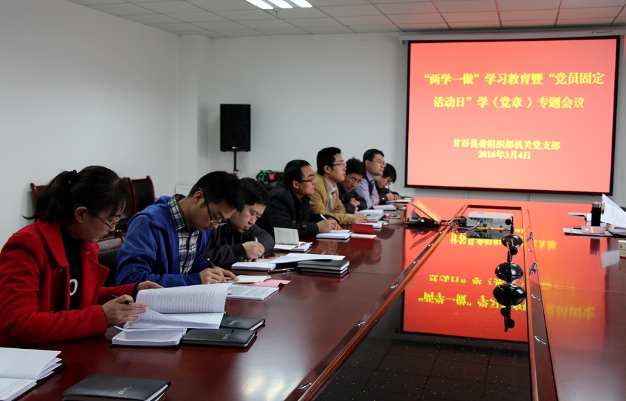 3月4日上午,甘谷县委组织部党支部按照“学党章党规、学系列讲话,做合格党员”学习教育的统一要求,组织全体党员参加了以学习党章为主要内容的首个“党员固定活动日”主题活动,县委常委、组织部长冯建新以普通党员身份参加活动并讲话。