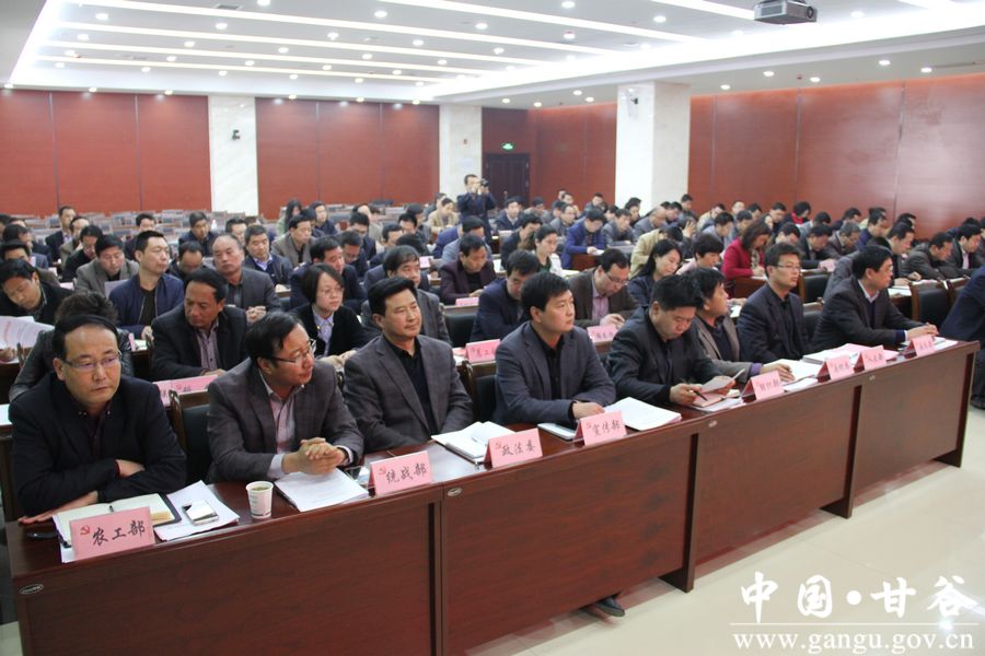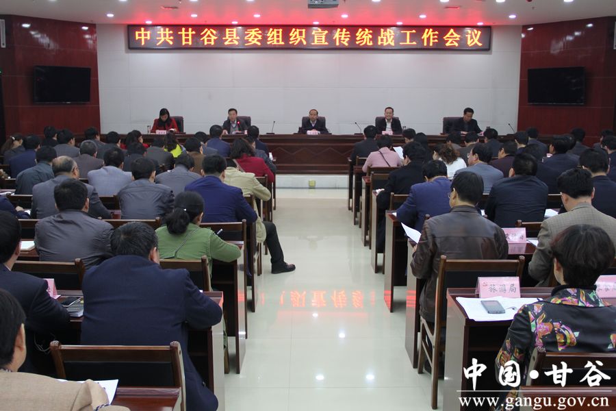 3月28日,甘谷县委召开组织宣传统战工作会议,传达贯彻中央和省、市组织、宣传、统战系统工作会议精神,安排部署2016年度全县组织、宣传、统战工作,动员全县各级党组织和广大党员干部开拓创新、狠抓落实,努力开创全县组织、宣传、统战工作新局面,为推动全县经济社会转型发展提供坚强政治保证。