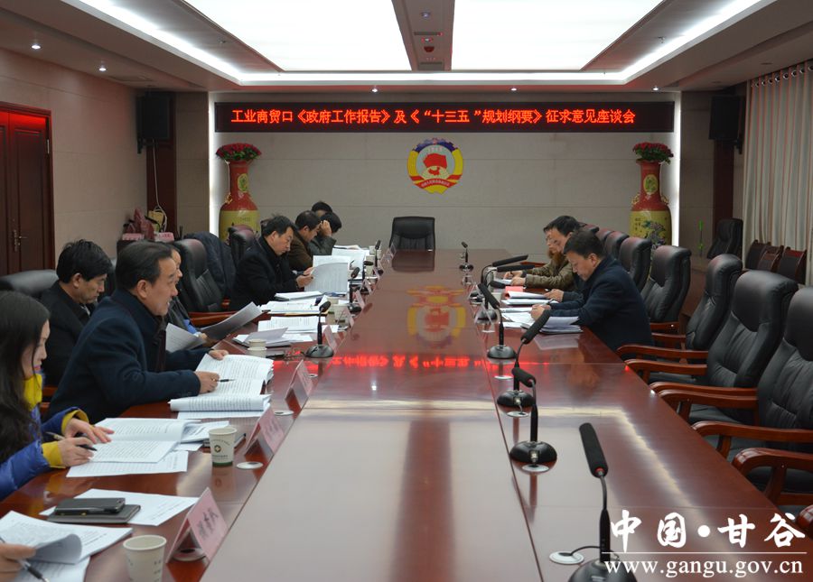 1月8日,甘谷县召开工业商贸口《政府工作报告》(征求意见稿)及《十三五规划纲要》(征求意见稿)征求意见座谈会。副县长冯全敬主持会议并讲话,政府办、发改局、工业商贸口相关单位负责人参加会议。